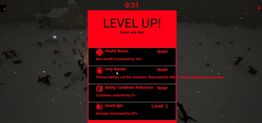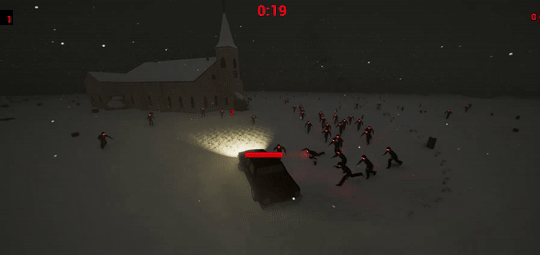 A game inspired by Vampire Survivor, but in a car, where you can run over vampires with your car and burn them with your headlights.